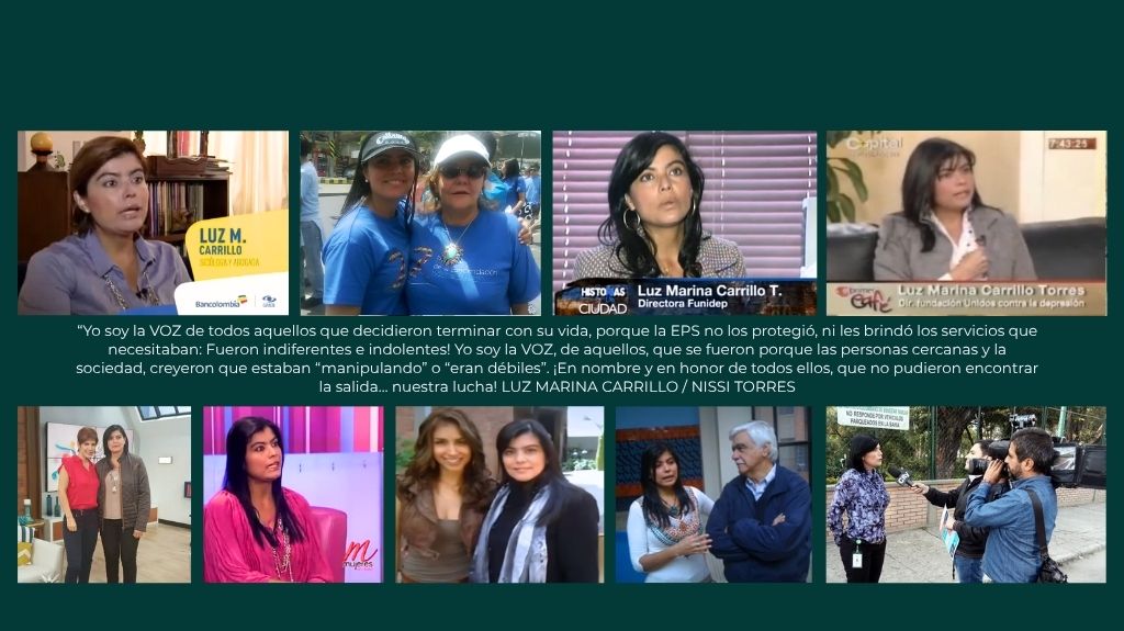 Mi nombre es Luz Marina Carrillo terapeuta, Directora FUNIDEP, con diagnostico hace mas de 30 años de depresion y ansiedad por causas de ABANDONO, DUELO, SEPARACION, INSEGURIDAD. Estoy aquí para resolver cualquier inquietud que tengas, si deseas comentarme la situación, puedes escribirme o llamarme por el call center 3108588930 o 601 4798056, tengo toda la disponibilidad para orientarte en tu crisis.…. por favor recuerda que LA PSICOTERAPIA ES LO MAS IMPORTANTE para que veas resultados en la crisis, porque permite cambiar los pensamientos intrusivos irracionales que te están generando emociones negativas y síntomas físicos. Ayudarte a ti, me ayuda a mi, porque estoy prestando servicio!!
